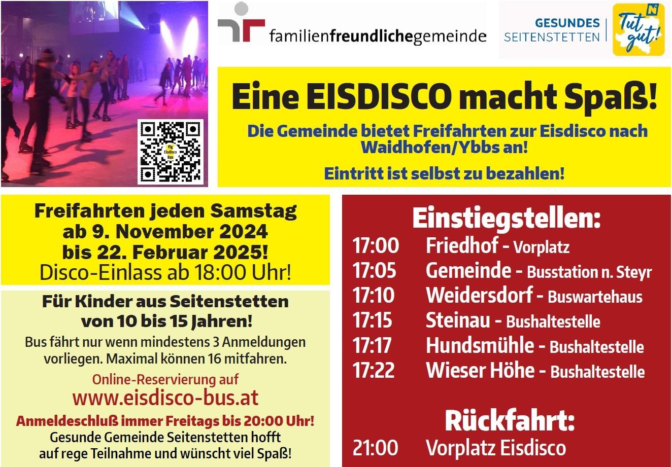Freifahrten zur Eisdisco Waidhofen/Ybbs
