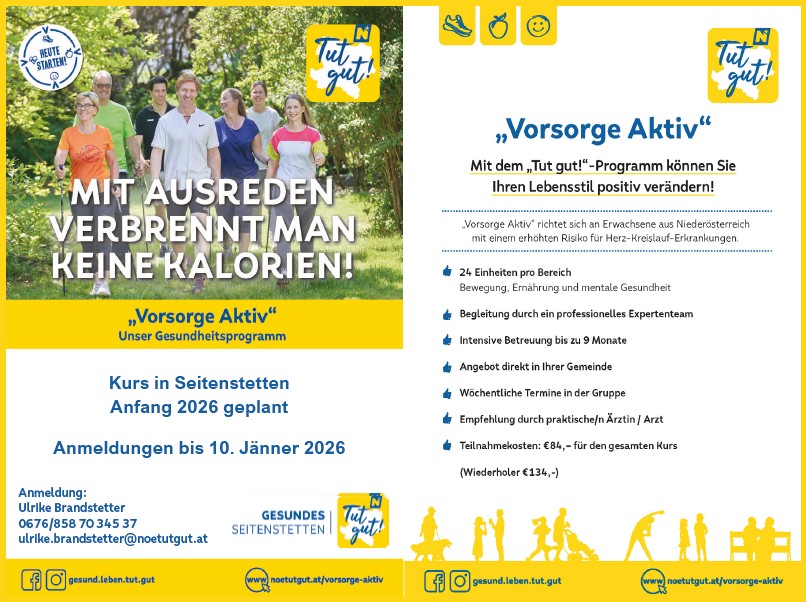 "Vorsorge Aktiv" - Kurs in Seitenstetten Anfang 2026 geplant