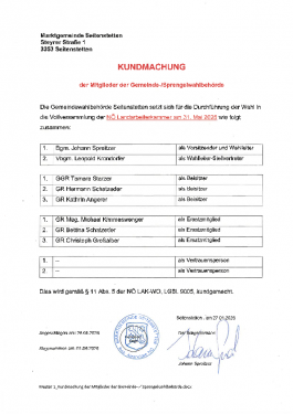 Kundmachung Mitglieder Wahlbehörde Landarbeiterkammerwahl 2026